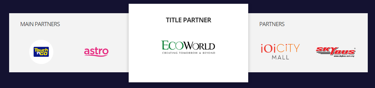 The website managed to secure well-known brands to fund the event. Sponsors include Astro, Allianz, and Touch 'n Go, Taylor’s University, IOI City mall, Skybus, and 12 additional brands. Brands and sponsors are displayed on the site to spark top-of-mind awareness and strategic branding.